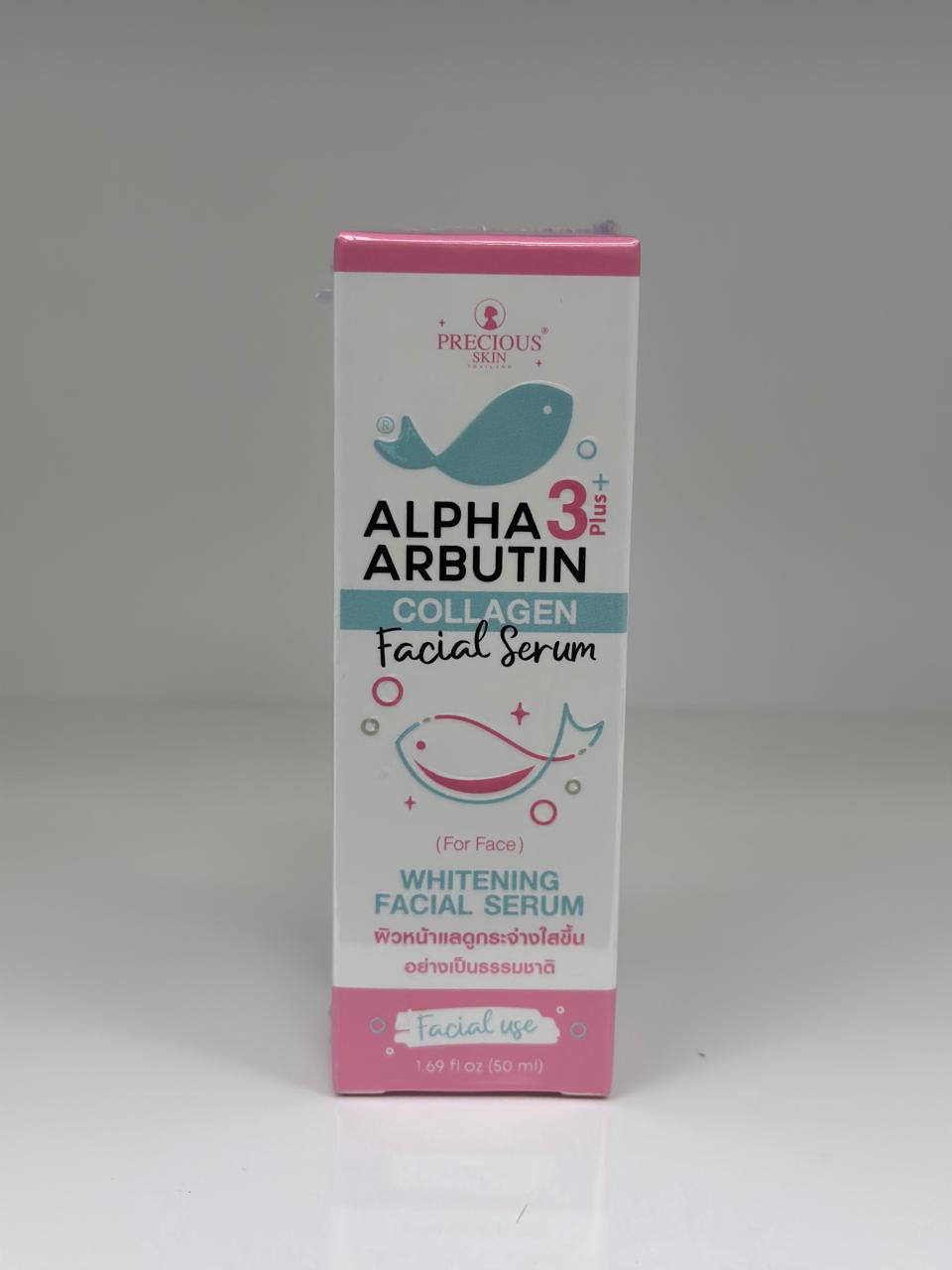 Reveal a clearer, more youthful face with our concentrated Alpha 3 Arbutin Facial Serum. This intensive treatment contains 3x the standard amount of Alpha Arbutin combined with premium Collagen for ultimate whitening and anti-aging results. The 50ml bottle provides a potent formula that penetrates deep into the skin to fade dark spots and reduce the appearance of fine lines. Use it daily to achieve a professional-level radiance and a firm, smooth complexion. This product is specifically designed for effective results and skin nourishment. **Key Benefits:** – High Quality – Proven Results. **How to Use:** Follow instructions on the label.
